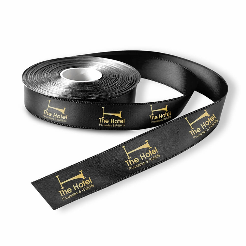 Fita de Cetim Personalizada Preta – Rolo de 50m